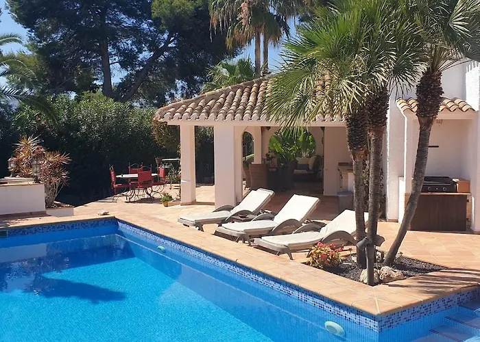 Moraira Villa Closest To Town Center offers proximity to nearby tourist spots, such as the Cap d'Or, situated 25 minutes' walk away. The villa awaits guests on a terrace with a swimming pool.